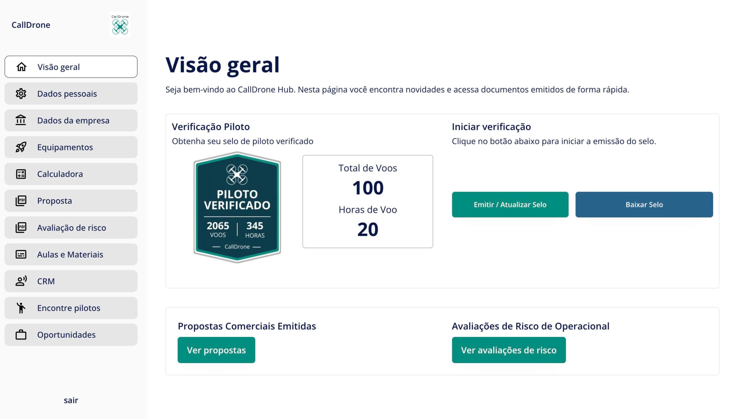 Obtenha um selo de piloto verificado com quantidade de horas e voos realizados.